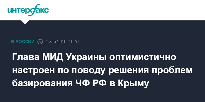 Москва. 7 мая. INTERFAX.RU - Министр иностранных дел Украины Константин Грищенко оптимистично настроен на решение с российской стороной всех проблемных вопросов базирования Черноморского флота в Крыму.