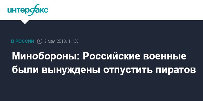 Минобороны: Российские военные были вынуждены отпустить пиратов