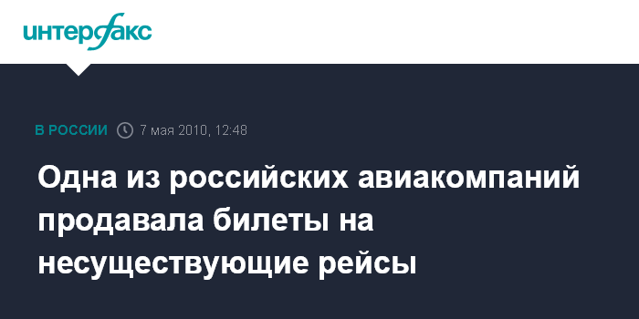 Одна из российских авиакомпаний продавала билеты на несуществующие рейсы