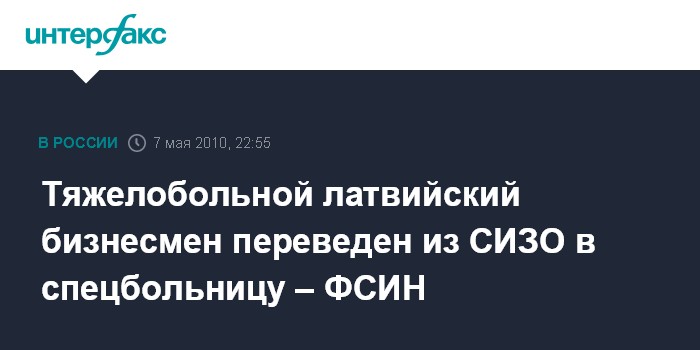 Тяжелобольной латвийский бизнесмен переведен из СИЗО в спецбольницу – ФСИН