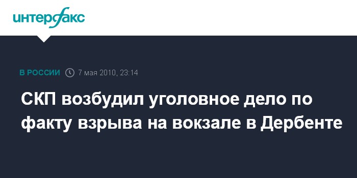 Москва. 7 мая. ИНТЕРФАКС - По факту взрыва на вокзале в Дербенте возбуждено уголовное дело по трем статьям УК РФ, сообщил "Интерфаксу" официальный представитель СКП РФ Владимир Маркин.