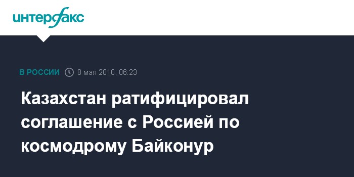 Соглашение между РФ и Казахстаном о развитии сотрудничества по эффективному использованию комплекса "Байконур" российской стороной было ратифицировано в июне 2005 года.