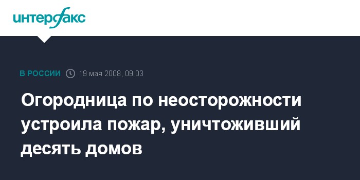 Огородница по неосторожности устроила пожар, уничтоживший десять домов