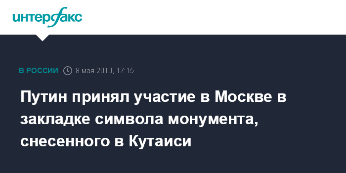 Путин принял участие в Москве в закладке символа монумента, снесенного в Кутаиси