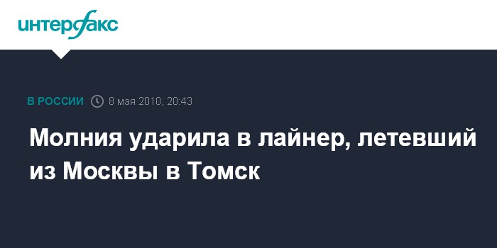 Молния ударила в лайнер, летевший из Москвы в Томск
