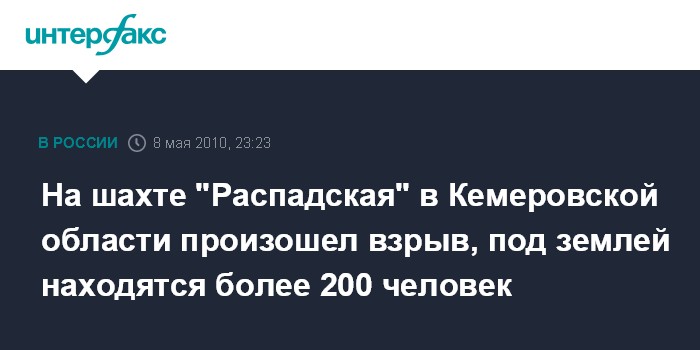 "В 20:55 мск в ГУ МЧС поступил сигнал о том, что произошел взрыв на шахте "Распадская", которая принадлежит ЗАО"Распадская угольная компания". В смене работает 312 человек", - сказали в пресс-службе.