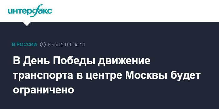 Москва. 9 мая. ИНТЕРФАКС-МОСКВА - Ограничения на движение частного и общественного транспорта будут введены в воскресенье в центре Москвы в связи с проведением парада на Красной площади и массовыми праздничными гуляниями в День Победы, сообщили "Интерфаксу" в Управлении ГИБДД столицы.