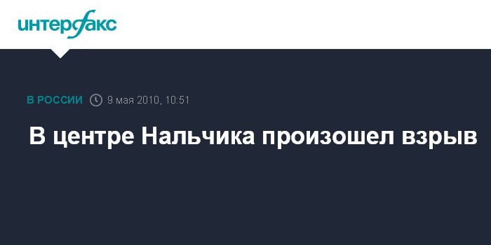 Москва. 9 мая. INTERFAX.RU - Взрыв на центральной улице столицы Кабардино-Балкарии Нальчика произошел утром в воскресенье.