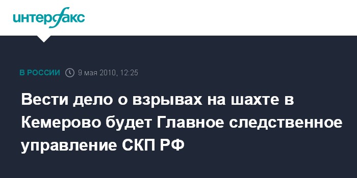 Москва. 9 мая. INTERFAX.RU - Уголовное дело по факту взрывов на шахте "Распадская" Кемеровской области передано в производство Главного следственного управления Следственного комитета