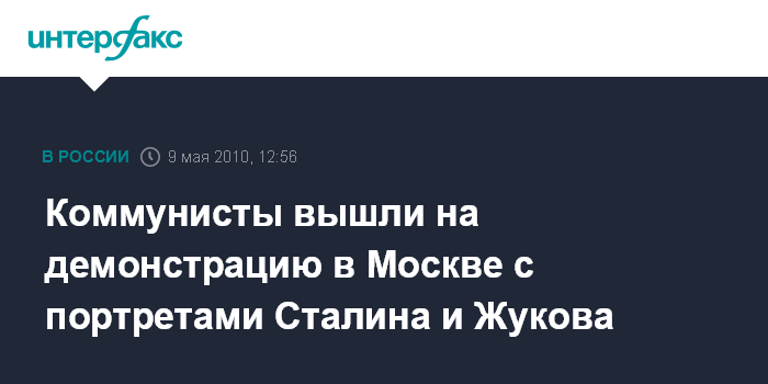 Москва. 9 мая. INTERFAX.RU - Праздничная демонстрация партии КПРФ и ее сторонников в честь Дня Победы стартовала от Пушкинской площади по Тверской улице.