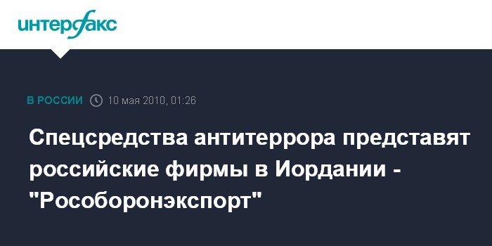 Спецсредства антитеррора представят российские фирмы в Иордании - "Рособоронэкспорт"