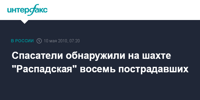 Междуреченск. 10 мая. ИНТЕРФАКС - Восемь пострадавших были обнаружены к утру понедельника при разборе завалов на шахте "Распадская" в Кемеровской области.
