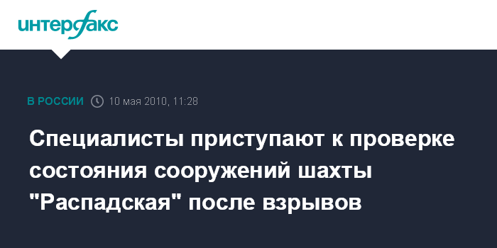 Специалисты приступают к проверке состояния сооружений шахты "Распадская" после взрывов