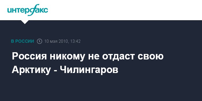Санкт-Петербург. 10 мая. INTERFAX.RU - Регулярные экспедиции в Арктику помогут России отстоять на нее свои права, считает спецпредставитель президента РФ по международному сотрудничеству в Арктике и Антарктике Артур Чилингаров. "Никому мы Арктику не отдадим. Есть международные обязательства, Конвенция по морскому праву - это способы доказательства своего влияния в арктических широтах", - сказал А.Чилингаров "Интерфаксу" в Петербурге.