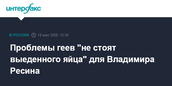 Москва. 19 мая. INTERFAX.RU - Стремление сексуальных меньшинств провести в Москве гей-парад и связанные с этим проблемы "не стоят выеденного яйца", заявил "Интерфаксу" исполняющий обязанности мэра Москвы Владимир Ресин.