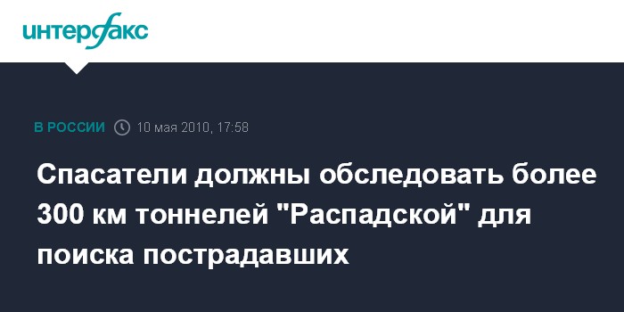 Междуреченск. 10 мая. INTERFAX.RU - Глава МЧС России Сергей Шойгу заявляет, что поисково-спасательные силы должны обследовать более 300 км тоннелей шахты "Распадская". "Общая протяженность маршрута подземных тоннелей - 311 км, где могли находиться люди. Их надо пройти и проверить", - сказал в понедельник С.Шойгу журналистам. Он сообщил, что "пока газовая ситуация позволяет спасателям работать в дыхательных аппаратах. На данное время пройдено около 1,5 км тоннелей". "Пока никто не обнаружен", - сказал С.Шойгу.