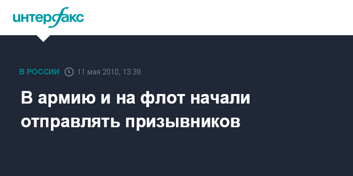 Москва. 11 мая. INTERFAX.RU - Военкоматы России во вторник начали массовую отправку призывников в Вооруженные силы РФ, другие войска силовых структур, заявил "Интерфаксу-АВН" заместитель начальника Главного организационно-мобилизационного управления Генштаба ВС РФ генерал-майор Евгений Бурдинский.