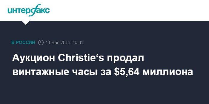 Женева. 11 мая. INTERFAX.RU - Аукционный дом Christie‘s International продал уникальные часы Patek Philippe 1943 г. выпуска за $5,64 миллиона.