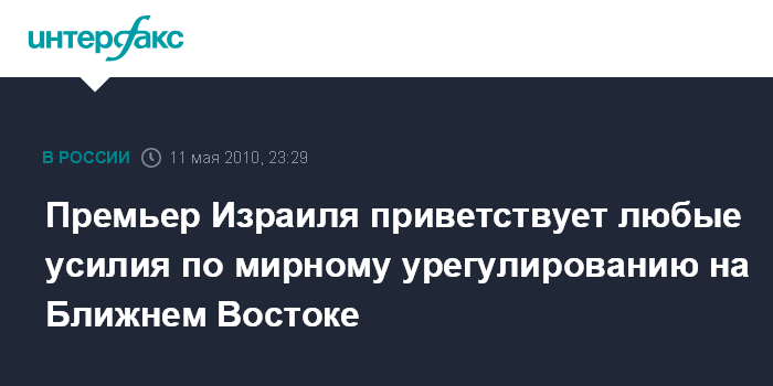 Иерусалим. 11 мая. ИНТЕРФАКС - Премьер-министр Израиля Биньямин Нетаньяху приветствовал стремление президента России Дмитрия Медведева к достижению скорейшего мирного решения ближневосточного конфликта, сообщает во вторник израильская газета "Гаарец".
