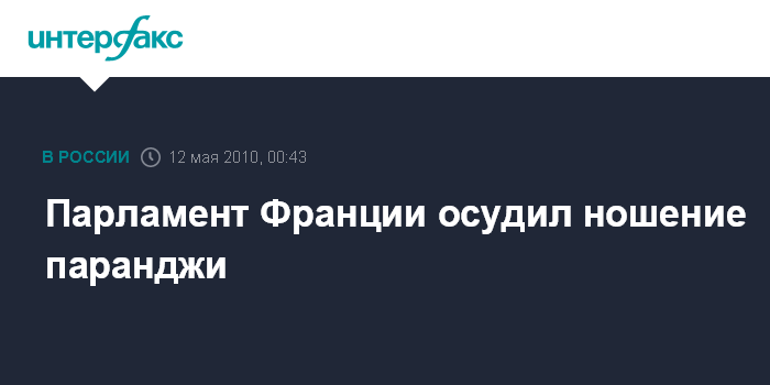 Москва. 12 мая. ИНТЕРФАКС - Парламент Франции принял резолюцию, осуждающую ношение паранджи, сообщает британская телерадиокорпорация Би-би-си.