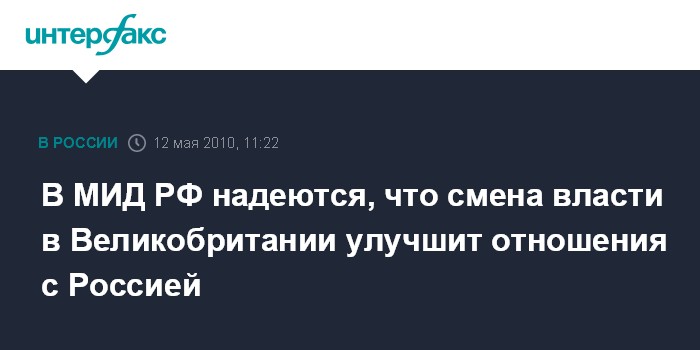 Москва. 12 мая. INTERFAX.RU - В Москве рассчитывают, что приход к власти в Великобритании нового руководства придаст импульс развитию российско-британских отношений.