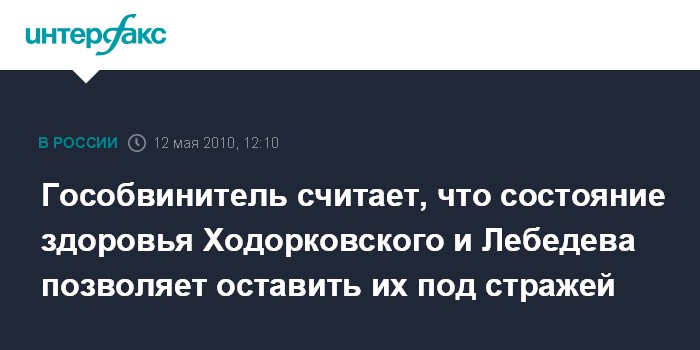 Гособвинитель считает, что состояние здоровья Ходорковского и Лебедева позволяет оставить их под стражей