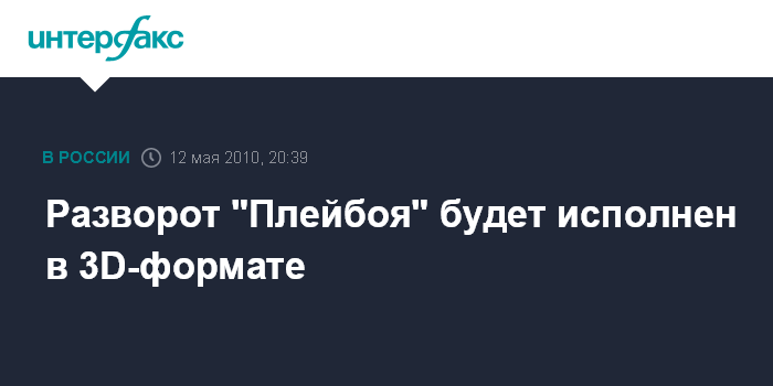 Вашингтон. 12 мая. INTERFAX.RU - Читатели популярного американского журнала "Плейбой" увидят в июньском номере трехмерный разворот, сообщил в среду американский телеканал MSNBS.