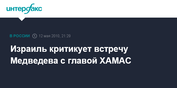 Иерусалим. 12 мая. INTERFAX.RU - Власти Израиля выразили недовольство по поводу встречи президента России с главой политбюро палестинского движения ХАМАС Халедом Машаалем, пишет в среду газета Haaretz.