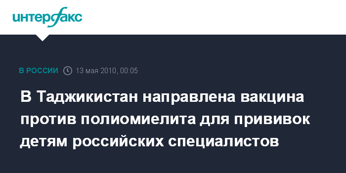 По словам Г.Онищенко, в Таджикистан направлена вакцина против полиомиелита, которую делают российским детям, чьи родители работают на территории этой центральноазиатской страны.