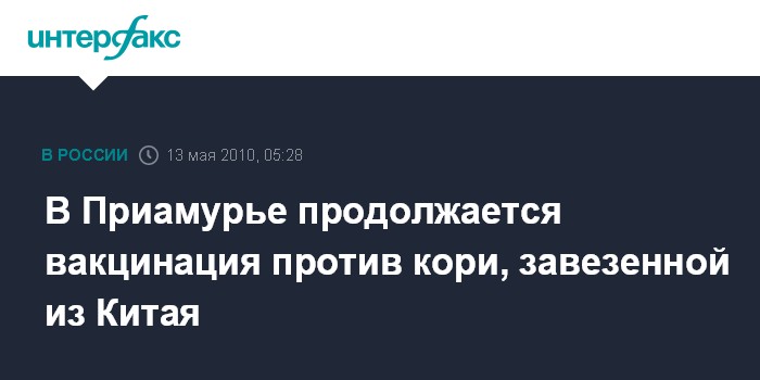 Как сообщалось ранее, медики Благовещенска начали экстренную вакцинацию жителей в связи с тем, что с 15 апреля по 4 мая 2010 года в городе был зарегистрирован 31 случай кори.