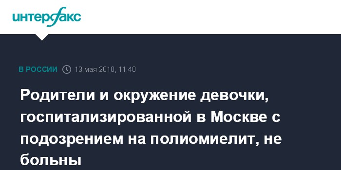 Родители и окружение девочки, госпитализированной в Москве с подозрением на полиомиелит, не больны