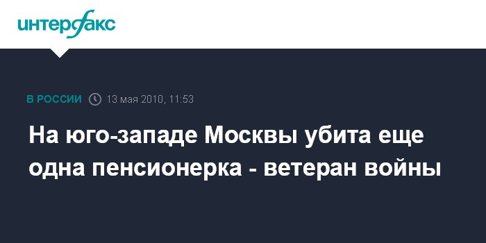 На юго-западе Москвы убита еще одна пенсионерка - ветеран войны