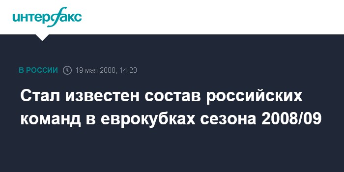 Москва. 19 мая. INTERFAX.RU – После финала Кубка России стал известен окончательный состав участников еврокубков от России на сезон 2008/09.