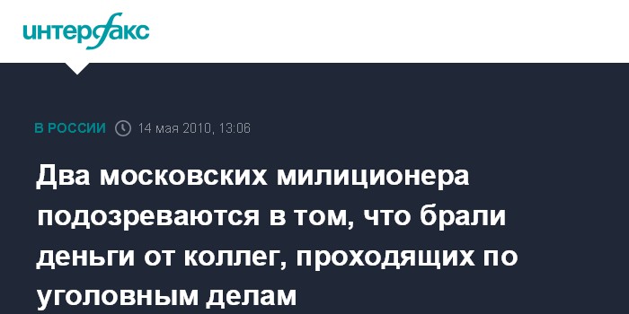 Два московских милиционера подозреваются в том, что брали деньги от коллег, проходящих по уголовным делам