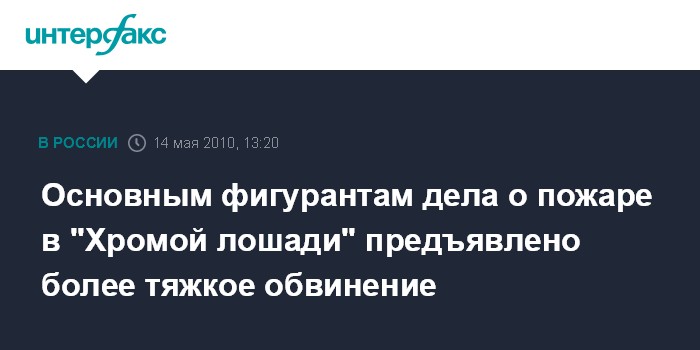По его словам, соучредителю "Хромой лошади" Заку, исполнительному директору Светлане Ефремовой и арт-директору Олегу Феткулову перепредъявлено обвинение по ст. 238 (Выполнение работ или оказание услуг, не отвечающих требованиям безопасности), предусматривающей лишение свободы на срок до 10 лет.