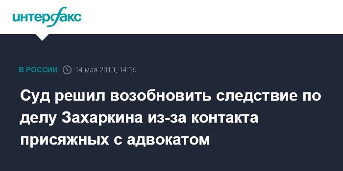 Суд решил возобновить следствие по делу Захаркина из-за контакта присяжных с адвокатом