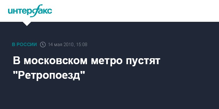 Москва. 14 мая. INTERFAX.RU – В субботу, 15 мая 2010 г. Московскому метрополитену исполняется 75 лет. В связи с этим, как сообщает пресс-служба метрополитена, для пассажиров подготовлен необычный подарок – "Ретропоезд", вагоны которого стилизованы под знаменитые вагоны типа "А" 30-х годов. Торжественное отправление нового поезда состоится 15 мая 2010 года в 10:00. "Ретропоезд" выйдет на линию