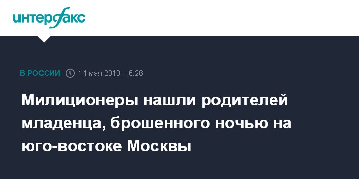 Милиционеры нашли родителей младенца, брошенного ночью на юго-востоке Москвы