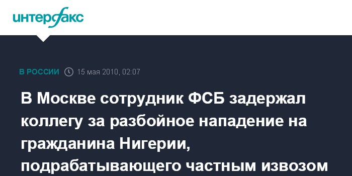 В Москве сотрудник ФСБ задержал коллегу за разбойное нападение на гражданина Нигерии, подрабатывающего частным извозом