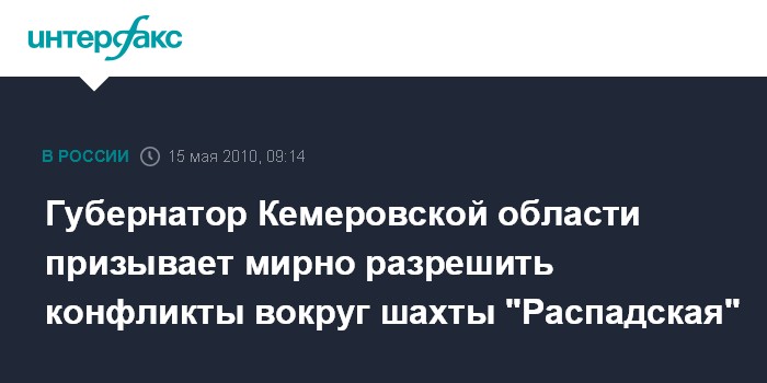 Губернатор Кемеровской области призывает мирно разрешить конфликты вокруг шахты "Распадская"