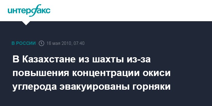 Алма-Ата. 16 мая. ИНТЕРФАКС-КАЗАХСТАН - В Карагандинской области Казахстана в шахте имени Кузембаева угольного департамента "Арселор Миттал Темиртау" произошло повышение концентрации окиси углерода.