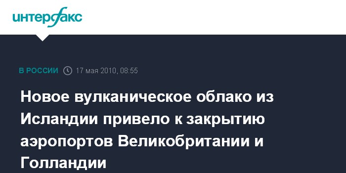 Новое вулканическое облако из Исландии привело к закрытию аэропортов Великобритании и Голландии