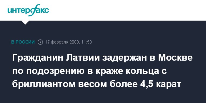 Гражданин Латвии задержан в Москве по подозрению в краже кольца с бриллиантом весом более 4,5 карат