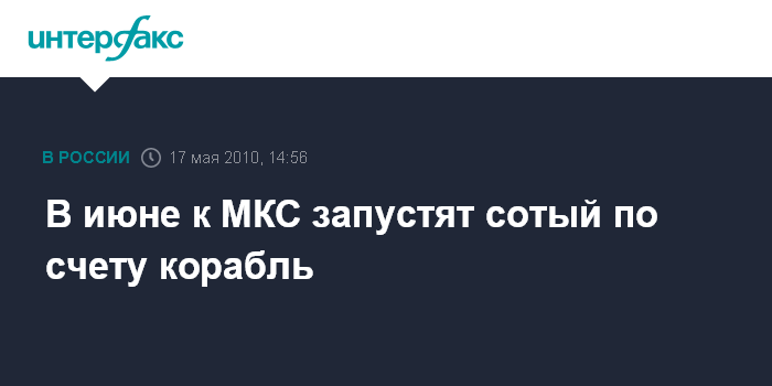 Москва. 17 мая. INTERFAX.RU - Старт 16 июня космического корабля "Союз ТМА-18" станет сотым запуском по программе строительства Международной космической станции (МКС).