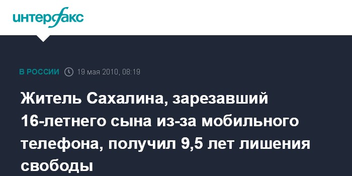 Житель Сахалина, зарезавший 16-летнего сына из-за мобильного телефона, получил 9,5 лет лишения свободы