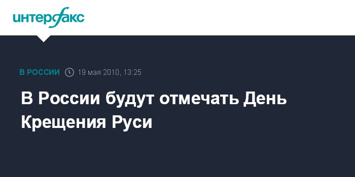 Москва. 19 мая. INTERFAX.RU - Депутаты Государственной Думы проголосовали за установление новой памятной даты - 28 июля будет отмечаться День Крещения Руси. Госдума в среду приняла во втором чтении соответствующее дополнение в действующий федеральный закон "О днях воинской славы и памятных датах России".
