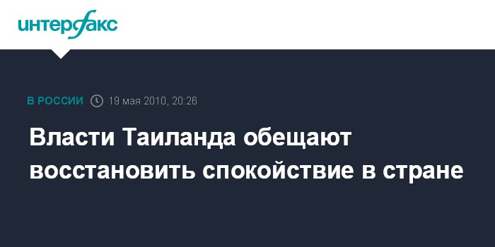 Бангкок. 19 мая. INTERFAX.RU - Премьер-министр Таиланда Абхисит Ветчачива в телеобращении в среду пообещал восстановить спокойствие в стране после того, как армия провела операцию по разгону антиправительственных манифестантов в Бангкоке.