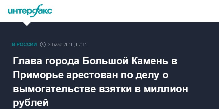 Собеседник агентства отметила, что за последнее время это второй случай уличения главы администрации на территории Приморья в получении взятки в крупном размере. В апреле этого года и.о. главы Пожарского района также был уличен во взяточничестве.