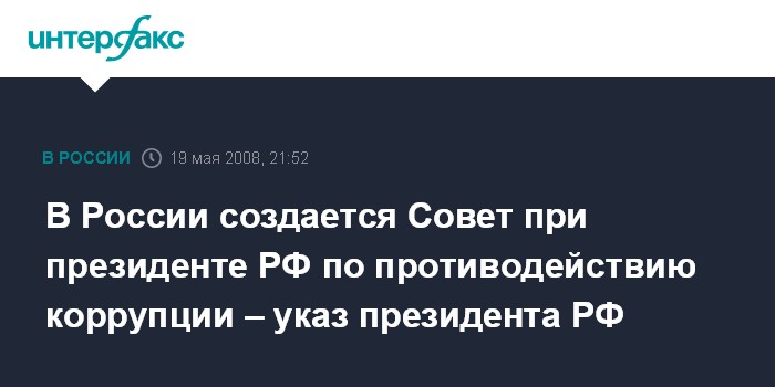 "В целях создания системы противодействия коррупции в РФ и устранения причин, ее порождающих, постановляю образовать Совет при президенте РФ по противодействию коррупции", - говорится в тексте указа.