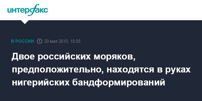 Двое российских моряков, предположительно, находятся в руках нигерийских бандформирований